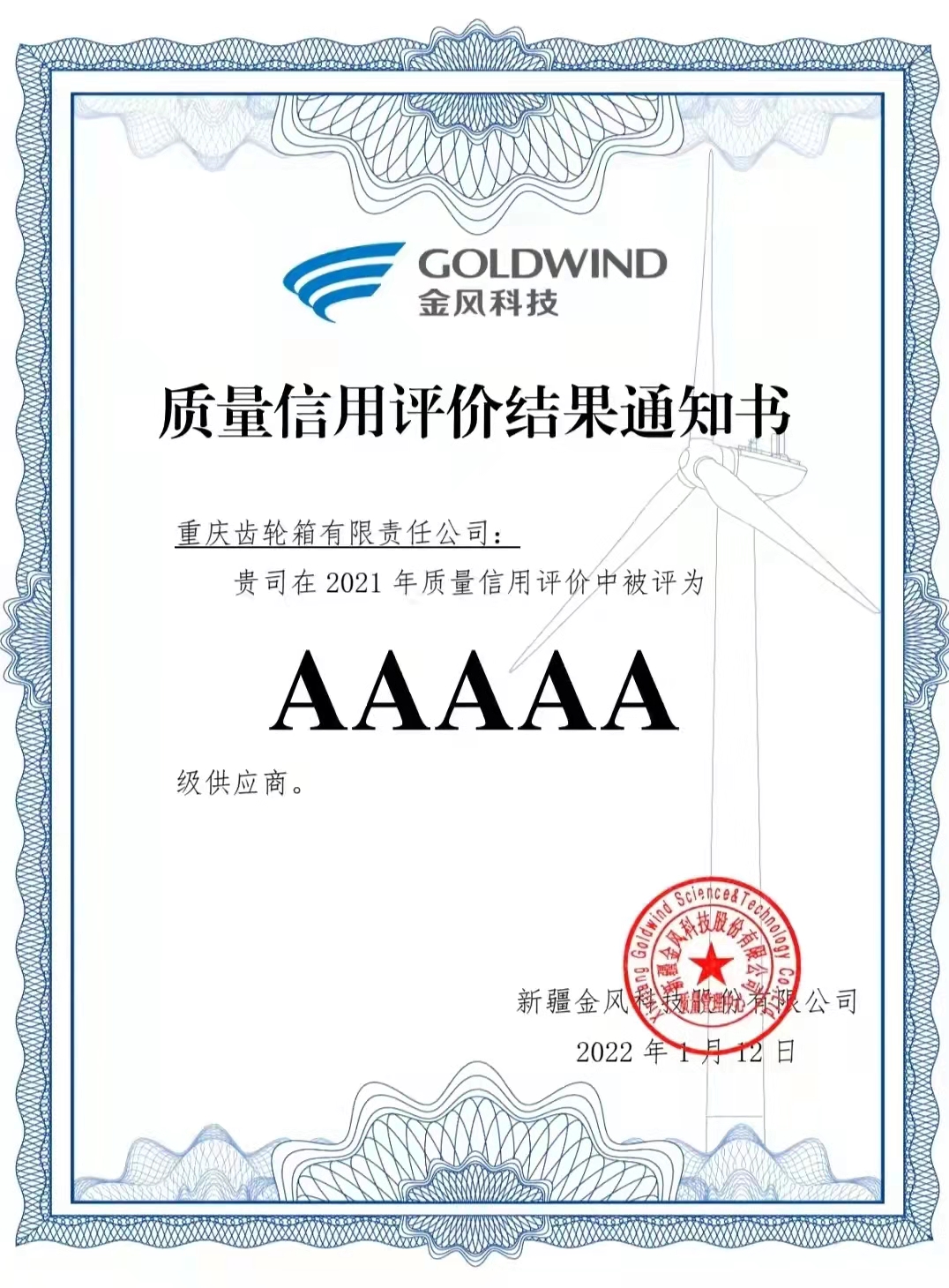 近日,中國船舶重齒公司憑借著優(yōu)質(zhì)的產(chǎn)品和出色的服務(wù),在金風(fēng)科技2021年質(zhì)量信用評價中再一次被評為AAAAA級供應(yīng)商,這是重齒公司連續(xù)三年被評為5A級供應(yīng)商!2021年,對于重齒公司來說是充滿巨大挑戰(zhàn)的一年。這一年,風(fēng)力發(fā)電受到平價上網(wǎng)政策的沖擊,行業(yè)價格戰(zhàn)空前白熱,但是重齒公司始終不遺余力,全力為金風(fēng)科技提供優(yōu)質(zhì)的產(chǎn)品和服務(wù),雙方攜手共進,繼續(xù)互為偏航變槳減速器產(chǎn)品的最大合作伙伴。再獲殊榮,不僅金風(fēng)對重齒產(chǎn)品質(zhì)量和服務(wù)質(zhì)量的認可,更是鼓勵和鞭策。公司將在2022年繼續(xù)秉承“以客戶為中心”的理念,積極應(yīng)對市場新動態(tài),提升科技創(chuàng)新能力,加強人才隊伍建設(shè),為客戶提供更加優(yōu)質(zhì)的產(chǎn)品和高效的服務(wù)。