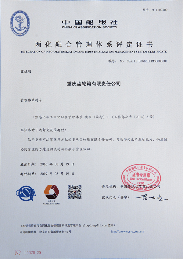 Integration of Information and Industrialization Management System Certificate