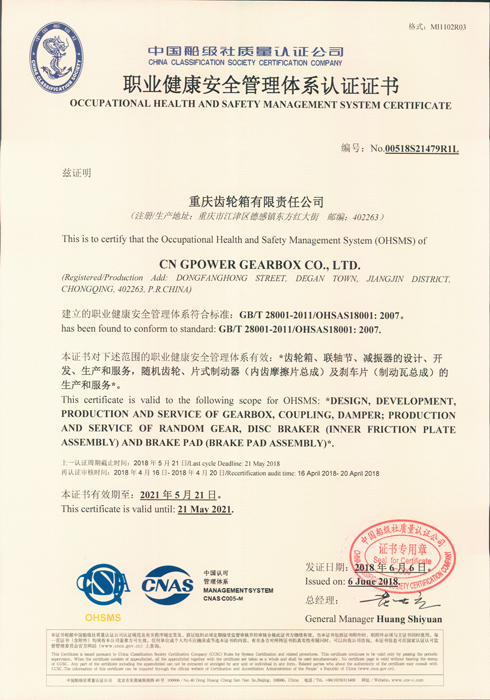 Occupational Health and Safety Management System Certificate (2018)